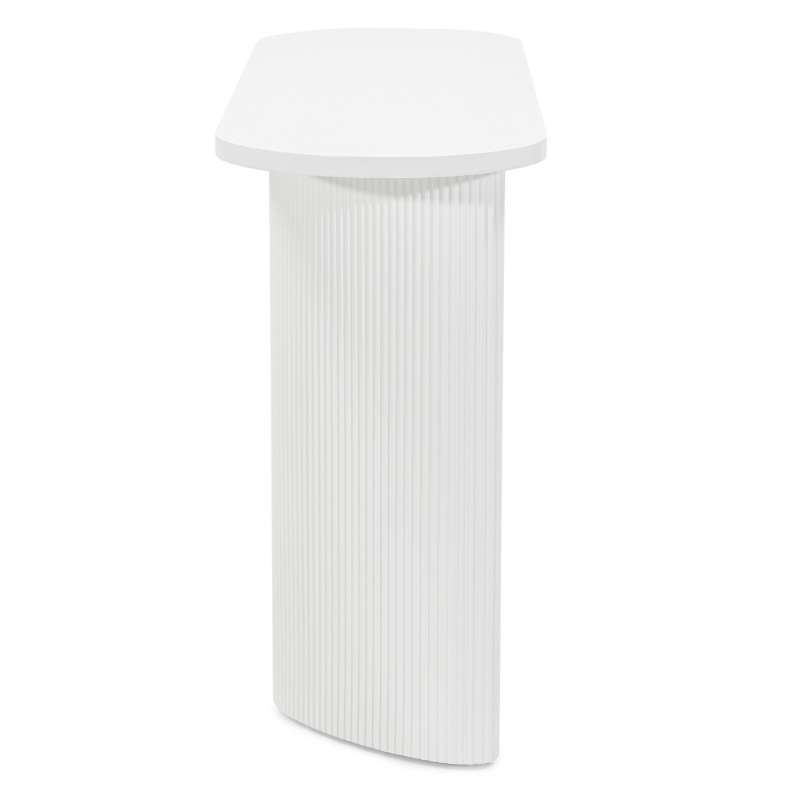 Konsola Pauline to doskonały przykład nowoczesnej elegancji, która zachwyca prostotą i stylowymi detalami. Jej owalny blat idealnie łączy funkcjonalność z estetyką, a solidne nogi wykończone lamelami nadają jej unikatowy charakter.