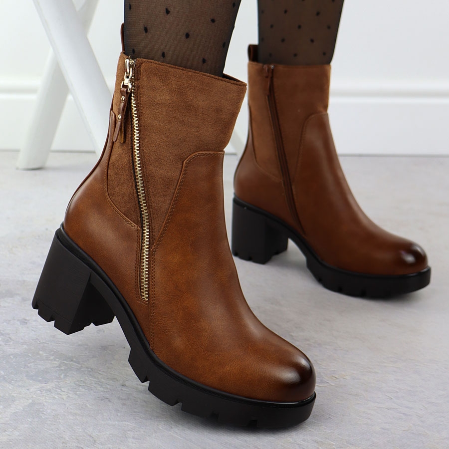 Botki damskie ocieplane na słupku z zamkiem camel M.Daszyński 23108