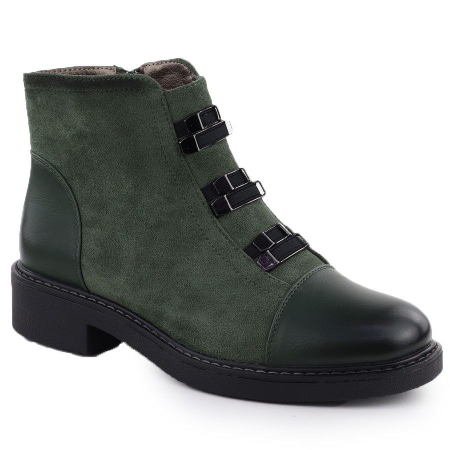 Botki damskie zamszowe ocieplane zielone M.Daszyński SA252-4