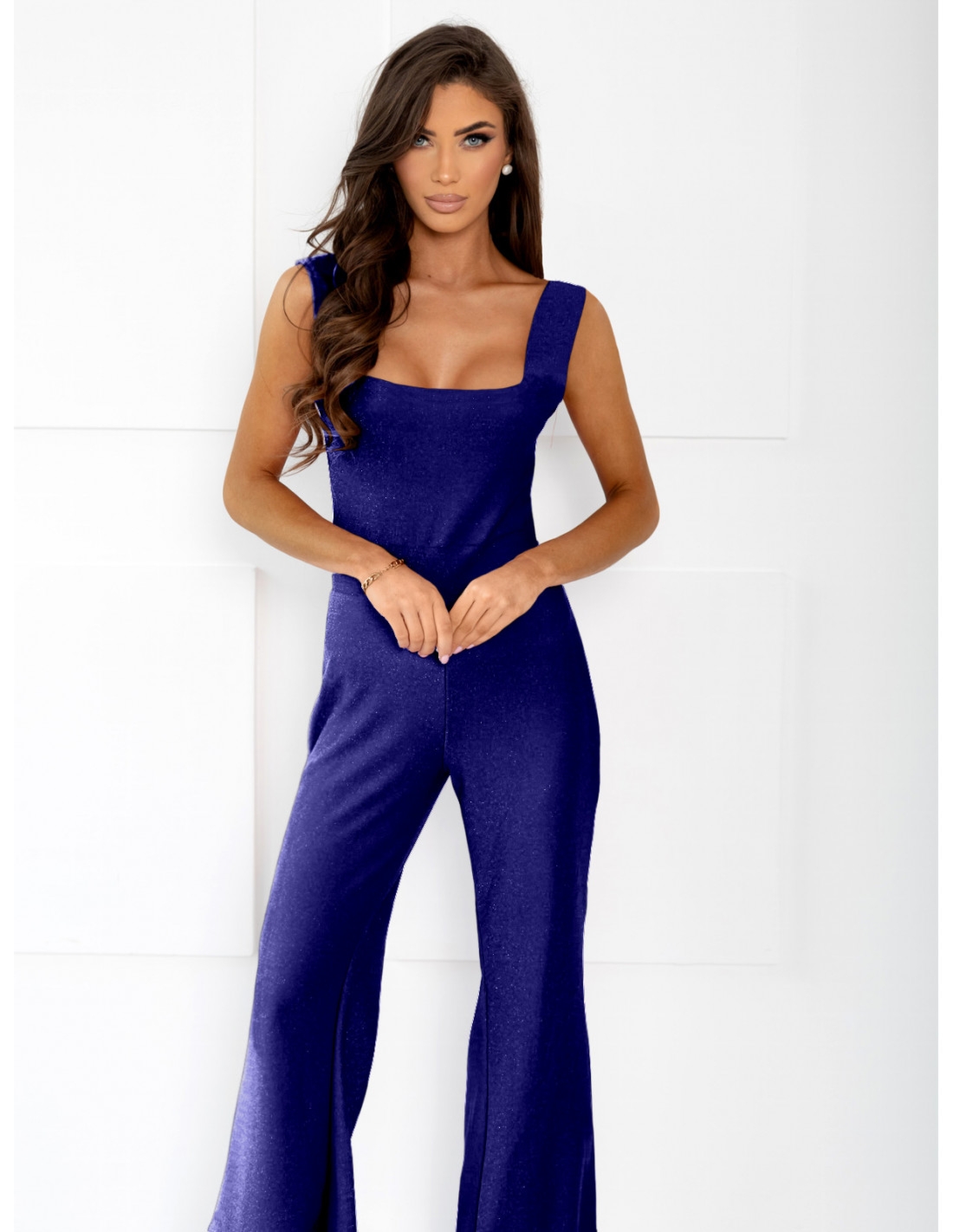 Brokatowy kombinezon z szerokimi nogawkami RONY – chabrowy Odkryj nasz zachwycający brokatowy kombinezon na szerokich ramiączkach – idealny wybór na niezapomniane imprezy w klubie oraz romantyczne randki! Jego błyszczący materiał doda Ci blasku i sprawi, że będziesz lśnić w każdym świetle. Szeroki pas w talii subtelnie podkreśla kobiece kształty, a nogawki typu dzwony dodają stylowego, retro charakteru. Dzięki elastycznemu materiałowi poczujesz się komfortowo i pewnie przez całą noc. Nie musisz martwić się o dobór stylizacji – ten kombinezon to kompletny zestaw, który w kilka chwil zamieni Cię w ikonę mody. W połączeniu z kurtką skórzaną stworzysz rockowy look idealny do klubu, a elegancka marynarka sprawi, że będziesz wyglądać szykownie na randce. Wysokie szpilki i wyrazista biżuteria dopełnią całości, nadając Twojej stylizacji wyjątkowego charakteru. Nie czekaj – dodaj odrobinę blasku do swojej szafy i poczuj się jak gwiazda każdej nocy! Chabrowy kombinezon – idealny wybór na wyjątkowe okazje, gdzie chcesz błyszczeć w dosłownym tego słowa znaczeniu!