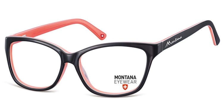Okulary Montana, to wysokiej jakości produkt – Szwajcarski projekt. Okulary stworzone przez optyków dla optyków, cenione w świecie optyki. Najmodniejsze, jak również klasyczne style.   Lekkie – wygodne Posiadają również niezawodny, wytrzymały metalowy zawias. Mogą być formowane na gorąco i na zimno. Modne oraz klasyczne wzory. Zawiasy FLEX ( teleskopy )  pozwalają na odgięcie zausznika poza linię okularów, co ułatwia zakładanie okularów i zapewnia ich bezuciskowe noszenie.   OPRAWKI ACETATOWE Cechują się niezwykłą wytrzymałością, oraz są materiałem miłym w dotyku. Stylowe oprawy wycina się z wielowarstwowej płyty acetatowej, zwanej inaczej octanem celulozy, po czym wykańcza się je ręcznie, oraz nabłyszcza. Dzięki temu zawiłemu procesowi produkcji zwiększa się połysk oprawek a także są bardziej elastyczne.   Zgodne z normami ENV14027; ISO 12870, oraz zgodne z dyrektywą CE   W ZESTAWIE: 1. etui twarde  2 .woreczek do okularów 3. ściereczka do soczewek   SZCZEGÓŁY: Producent MONTANA Rodzaj: damskie Kształt: kocie Właściwości soczewek: demo lens, z nadrukiem na soczewce (oprawki mają możliwość wymiany soczewek) Filtr UV: UV 400 Kategoria filtra: kat. 0 Kolor oprawki: czarne + brzoskwiniowe, połysk Kolor soczewki: bezbarwne Dostępność: w magazynie Czas realizacji: 1-2 dni WYMIARY: szerokość między zausznikami (mierzona przy zawiasach) (cm): 13.0 max wysokość soczewki razem z oprawką (cm): 4.3   Wymiary: 53 15 135 53 – szerokość soczewki podana w mm 15 – szerokość mostka podana w mm 135 – długość zausznika podana w mm Dla kogo:damskie Materiał oprawki:tworzywo sztuczne Kształt oprawki:Kocie oczy Rodzaj oprawki:pełna Dominujący kolor oprawki:brzoskwiniowe Kolor soczewki:przezroczysty / bezbarwny Szerokość między zawiasami (mieści się w zakresie):pomiędzy 12,1cm – 13cm Polaryzacja:NIE Antyrefleks / Blue Light:NIE Soczewka lustrzana:NIE Możliwość wymiany szkieł:TAK Nakładane na korekcyjne:NIE Rozjaśniające:NIE Fotochrom:NIE