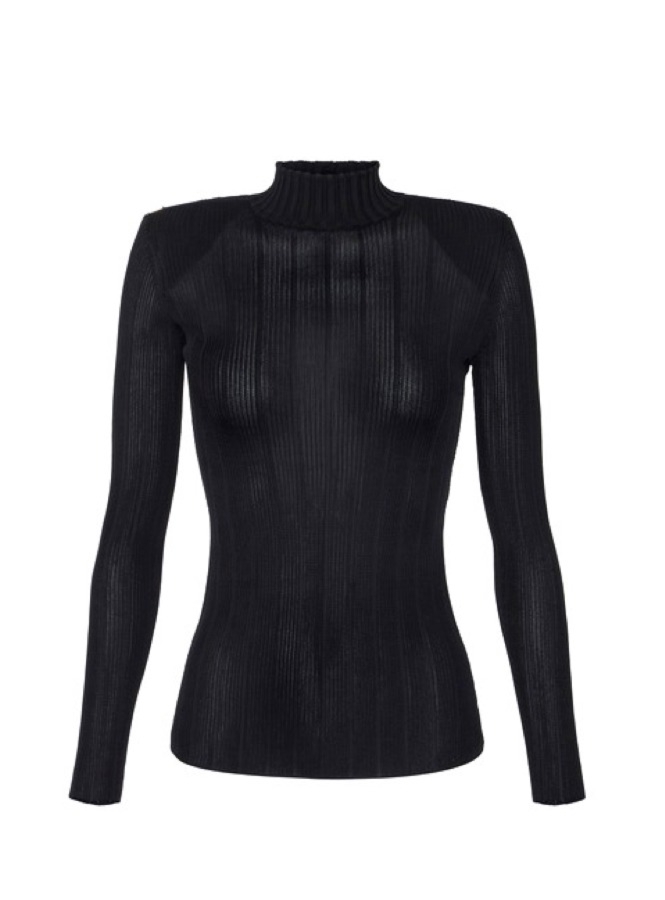 DZIANINOWY CZARNY GOLF ELISABETTA FRANCHI Z TRANSPARENTNEGO MATERIAŁU W PRĄŻKI