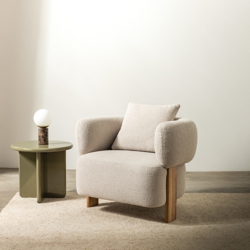 Marzysz o idealnym miejscu, w którym znajdziesz ukojenie po długim dniu? Poznaj fotel Noko, który został stworzony z myślą o Twoim komforcie i estetyce. Jego szarobeżowa tkanina boucle o miękkiej fakturze, bez problemu dopasuje się do każdego wnętrza.