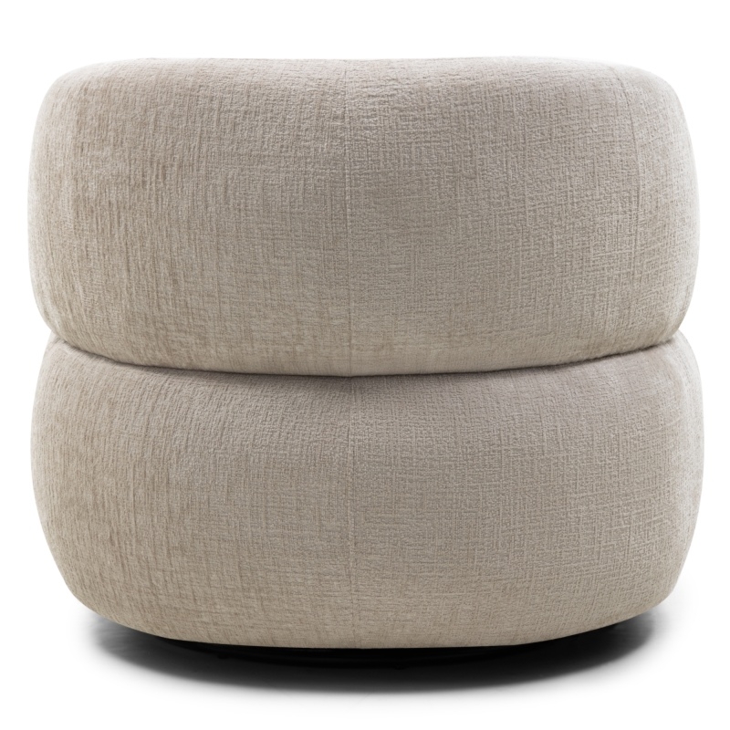 Siedzisko, wypełnione starannie dobranym połączeniem pianki, gęsiego puchu, włókien poliestrowych oraz sprężyn kieszeniowych i falistych, oferuje idealną równowagę między sprężystością a trwałością. Obicie wykonane z miękkiej tkaniny szenilowej w jasnobeżowym kolorze dodaje wnętrzu ciepła i subtelnej elegancji, harmonijnie komponując się z różnymi aranżacjami.