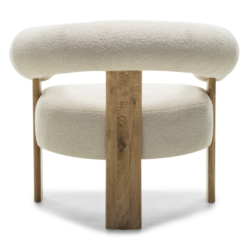 Fotel wypoczynkowy Kokei jasnobeżowy, obłe kształty, boucle/dąb