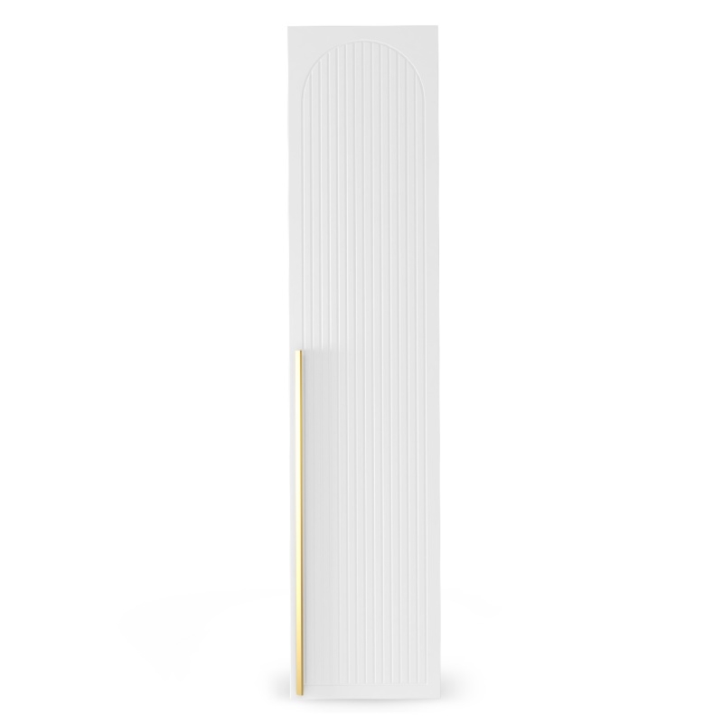 Front do szafy Neroli pozwoli Ci stworzyć szafę idealnie dopasowaną do Twojego stylu. Jego dekoracyjne ryfle w łuku dodają niepowtarzalnego charakteru, tworząc subtelny, a zarazem efektowny wzór. Ponadto system otwierania push to open zapewnia szybki i wygodny dostęp do wnętrza – wystarczy lekko nacisnąć aby szafa się otworzyła. Dla tych, którzy pragną dodatkowej elegancji, proponujemy złoty uchwyt, który nadaje całości wyjątkowego blasku.