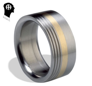 Obrączki wykonane z tytanu, matowane z paskiem złota pr. 0,750. Masz możliwość wyboru złota żółtego, lub białego.