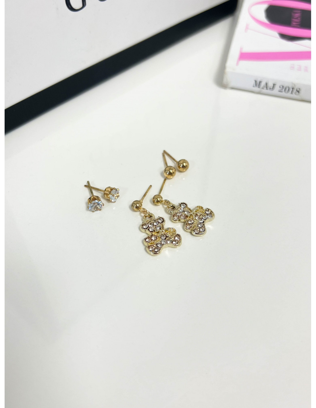 Kolczyki zestaw 3 pary TEDDY – złote Urocze kolczyki z motywem misiów, które doda blasku każdej stylizacji