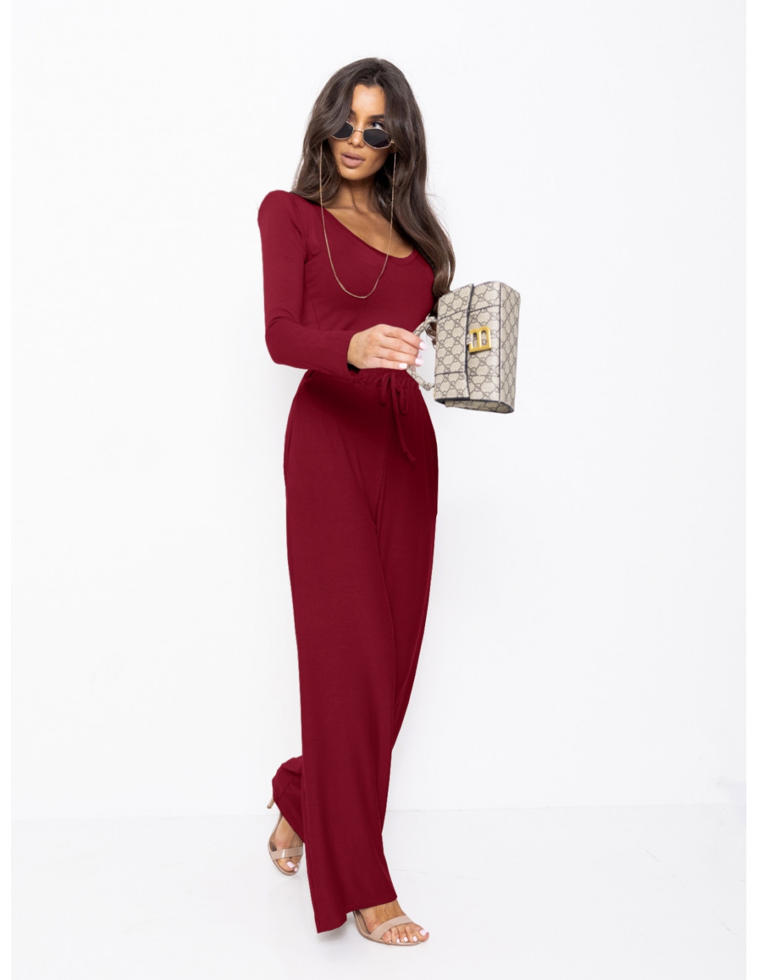 Komplet z wiskozy bluzka i szerokie spodnie AGRA – bordowy