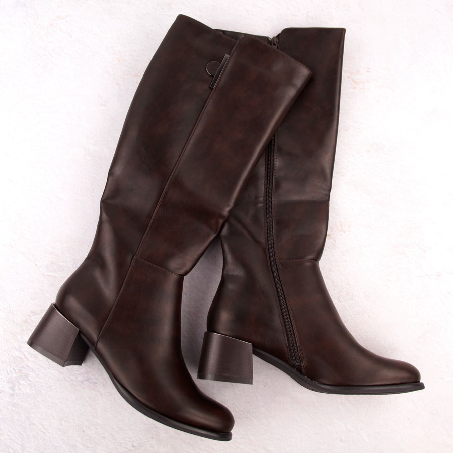 Kozaki renomowanej marki Jezzi. Cholewka wykonana z wysokogatunkowej skóry ekologicznej. Wyściółka i wkładka ocieplone przyjemnym w dotyku futerkiem. Model posiada gumki, które sprawiają, że buty można dopasować do różnej tęgości