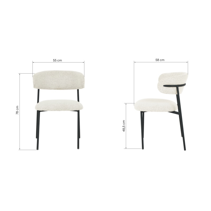 Tapicerowane krzesło Fresno z pewnością ożywi Twoje wnętrze, nadając mu wyrazistego charakteru. Mebel oferuje niezwykle wygodne siedzisko i otulające plecy oparcie, które zadbają o wyjątkowy komfort podczas wspólnych posiłków. Połączenie kremowej tkaniny boucle i czarnej konstrukcji sprawia, że krzesło emanuje nietuzinkowym stylem i nowoczesnością.