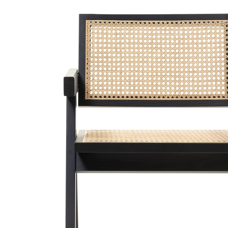Konstrukcja z drewna jesionowego nadaje mu niepowtarzalnego charakteru, podkreślając naturalne piękno materiału. Wykończenie w głębokim, wyrazistym czarnym kolorze dodaje nuty nowoczesności i elegancji, idealnie wpisując się w każde nowoczesne czy klasyczne wnętrze. Jednym z najbardziej wyrazistych elementów krzesła Freja jest oparcie i siedzisko, które ozdobione zostało misternie wykonaną plecionką wiedeńską. Dodaj krzesło Freja do swojego wnętrza i poczuj, jak elegancja wypełnia każdy jego kąt.