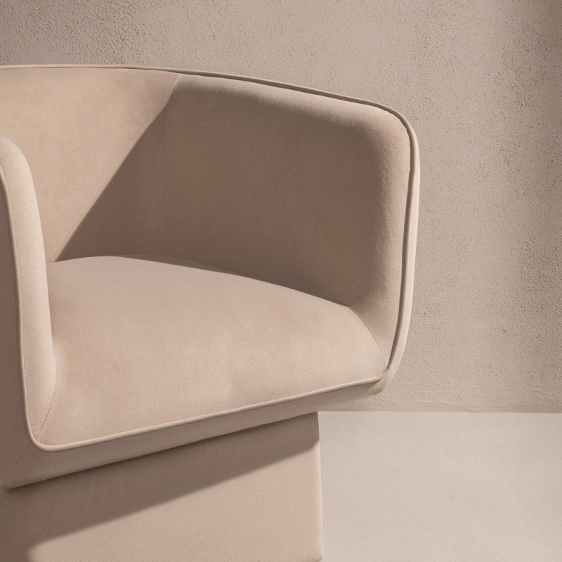Wykonane z miękkiej tkaniny welurowej w jasnobeżowym odcieniu, krzesło One kusi nie tylko swoim wyglądem, ale także przyjemnością dotyku. Ta delikatna tkanina wprost zachęca do odpoczynku i relaksu po długim dniu.