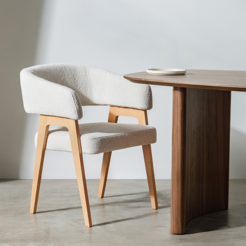 Pragniesz otaczać się pięknem i komfortem każdego dnia? Krzesło tapicerowane Kobe to kwintesencja elegancji, która odmieni Twoje wnętrze. Jego jasnobeżowa tkanina boucle o przyjemnej, puszystej fakturze nie tylko zachwyca wzrok, ale także zaprasza do relaksu, otulając Cię miękkością.