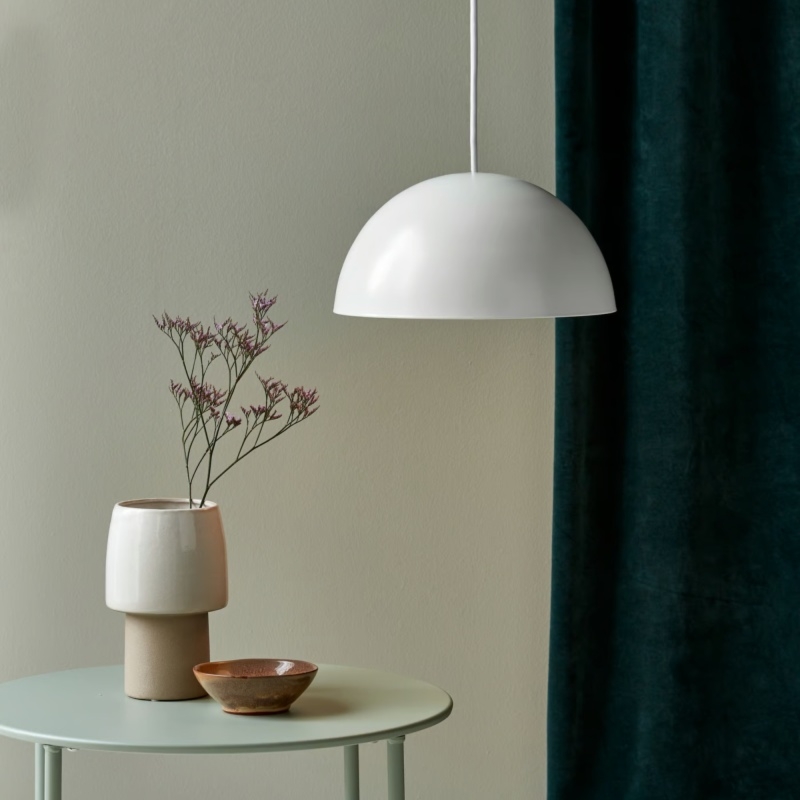 Lampa wisząca Ellen to doskonałe połączenie nowoczesnego designu i funkcjonalności, której metalowa konstrukcja w eleganckim białym kolorze nawiązuje do minimalistycznego i ponadczasowego stylu skandynawskiego.Unikalna lampa Ellen stanowi nie tylko oświetlenie, ale także wyrazisty element dekoracyjny, który podkreśla charakter każdego wnętrza. Jej duży, okrągły klosz nie tylko zapewnia wizualną objętość, ale także gwarantuje szerokie pole światła, tworząc przyjemne i równomierne oświetlenie w pomieszczeniu. Dzięki temu lampę można z łatwością dostosować do różnych aranżacji.