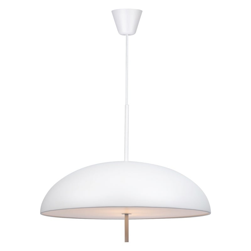 Lampa wisząca Versale doskonale odzwierciedla skandynawski minimalizm. Posiada okrągły, metalowy klosz w uniwersalnym białym kolorze, który emanuje przyjemnym, rozproszonym światłem. Umieszczona nad stołem w jadalni, stworzy niepowtarzalną aurę do wspólnego delektowania się jedzeniem i tworzenia niezapomnianych chwil w wyjątkowej atmosferze.