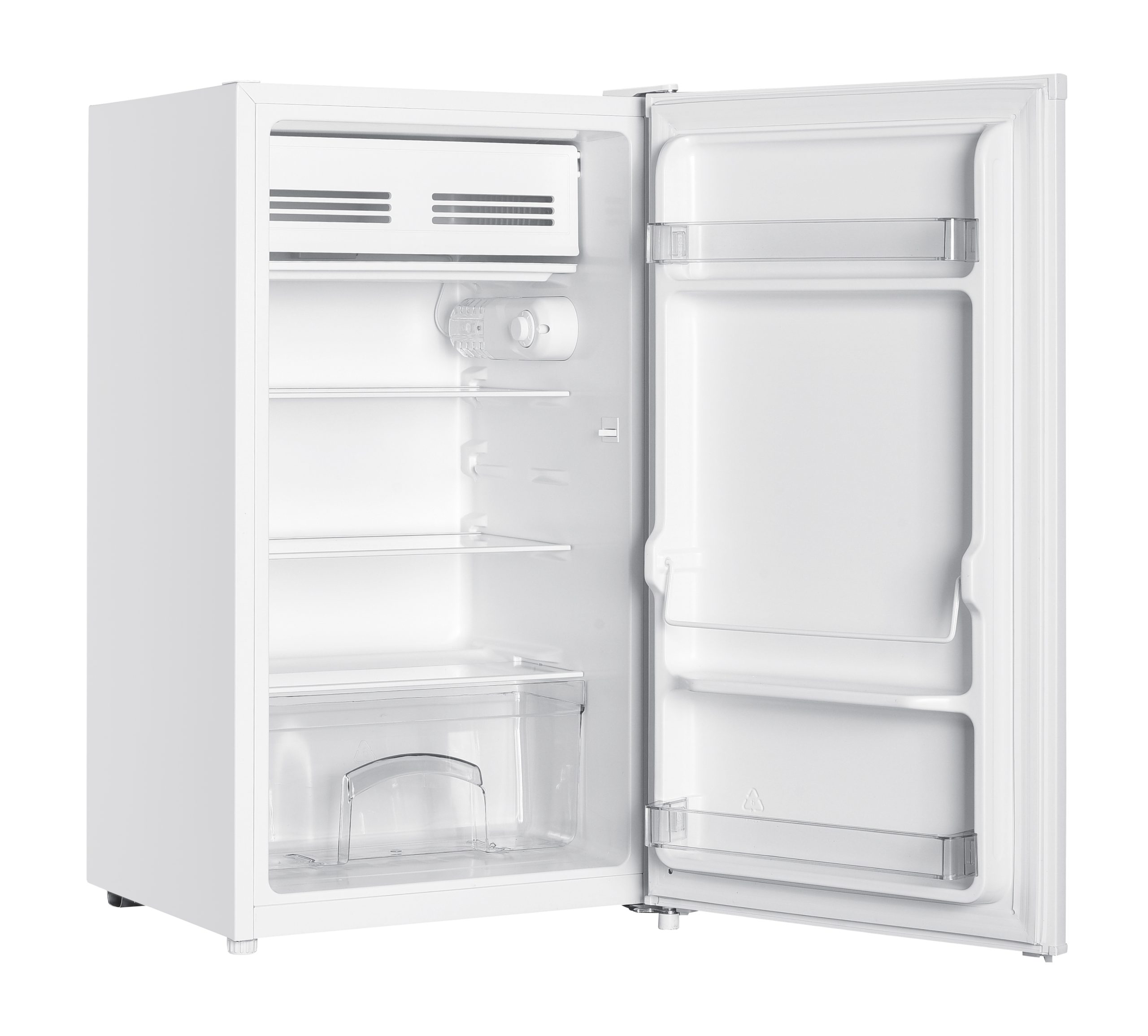 - Dodatkowe cechy: 2 szklane półki, 1 przezroczysta szuflada, 3 transparentne półki na drzwiach, regulowane nóżki, kompaktowa komora niskich temperatur