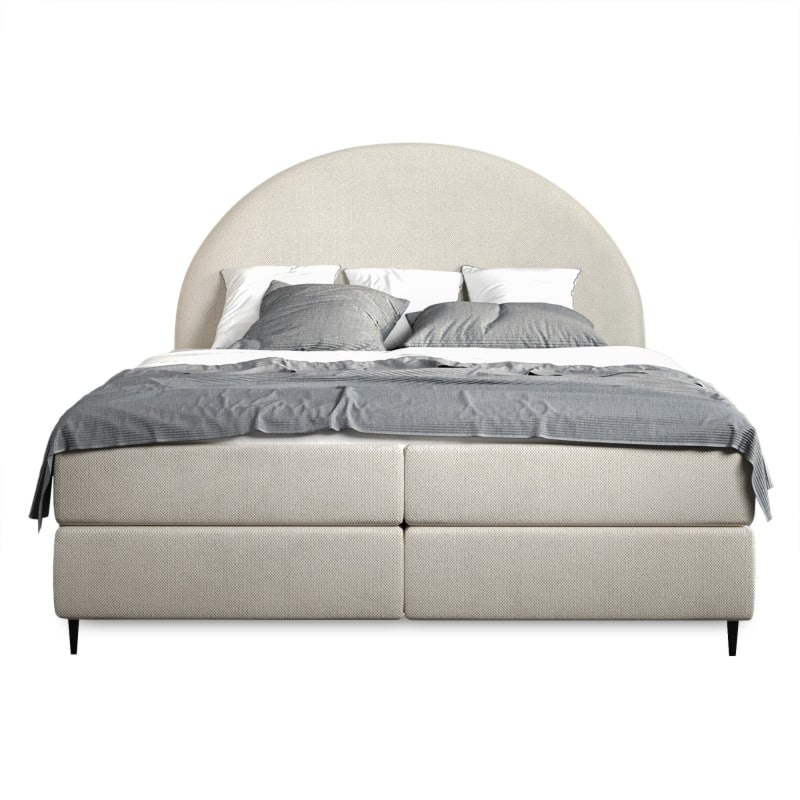Łóżko kontynentalne Lexy 180×200 cm z 2 pojemnikami, zaokrąglony zagłówek, jasnobeżowe