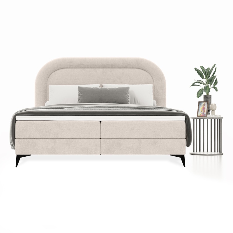 Łóżko kontynentalne Mela 140/160/180×200 cm z 2 pojemnikami, zaokrąglony zagłówek, beżowe, welur