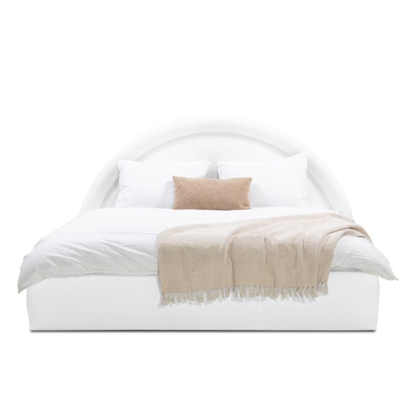 Łóżko Redondo 160×200 cm ze stelażem i pojemnikiem, białe, boucle