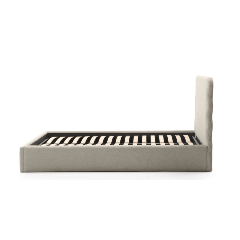 Łóżko Bolge wprowadzi nową jakość komfortu i stylu do Twojej sypialni. Jego zagłówek urzeka subtelnymi, falistymi liniami, które nadają mu unikalną, organiczną formę. Niezwykle miękka tkanina boucle w beżowym odcieniu, tworzy ciepły i przytulny klimat, który sprzyja relaksowi. Ponadto materiał ten powstał z przędzy wyprodukowanej z recyklingowanych tworzyw, co przyczynia się do ochrony naszego wspólnego środowiska.