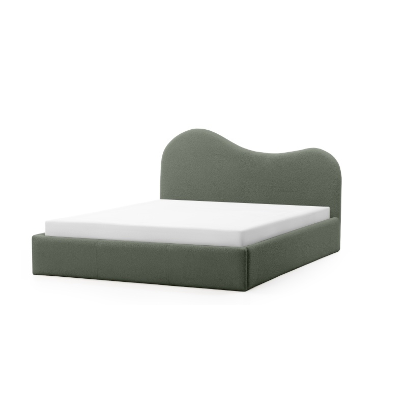 Wprowadź nowy poziom komfortu do swojej sypialni z łóżkiem Munni. Jego zagłówek zachwyca miękkimi, zaokrąglonymi liniami, nadającymi mu obłą formę. Ciemnozielona tkanina, w 100% wykonana z recyklingowanego poliestru, wnosi do wnętrza naturalność, miękkość i przytulność, stając się sercem każdej sypialni.
