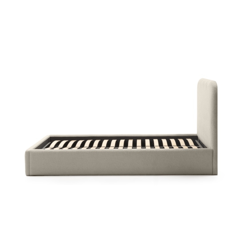 Łóżko Onda wprowadzi nową jakość komfortu i stylu do Twojej sypialni. Jego zagłówek urzeka subtelnymi, falistymi liniami, które nadają mu unikalną, organiczną formę. Niezwykle miękka tkanina boucle w beżowym odcieniu, tworzy ciepły i przytulny klimat, który sprzyja relaksowi. Ponadto materiał ten powstał z przędzy wyprodukowanej z recyklingowanych tworzyw, co przyczynia się do ochrony naszego wspólnego środowiska.