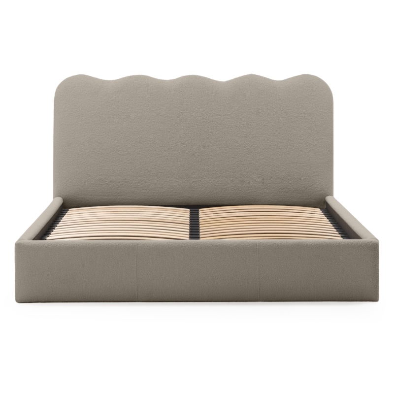 Łóżko Onda wprowadzi nową jakość komfortu i stylu do Twojej sypialni. Jego zagłówek urzeka subtelnymi, falistymi liniami, które nadają mu unikalną, organiczną formę. Niezwykle miękka tkanina boucle w brązowoszarym odcieniu, tworzy ciepły i przytulny klimat, który sprzyja relaksowi. Ponadto materiał ten powstał z przędzy wyprodukowanej z recyklingowanych tworzyw, co przyczynia się do ochrony naszego wspólnego środowiska.