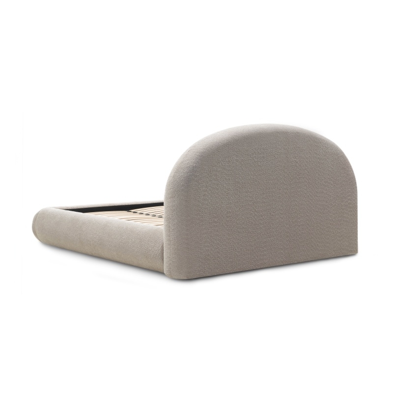 Łóżko tapicerowane Asillo 180×200 cm ze stelażem i pojemnikiem, beżowe, boucle, obłe kształty