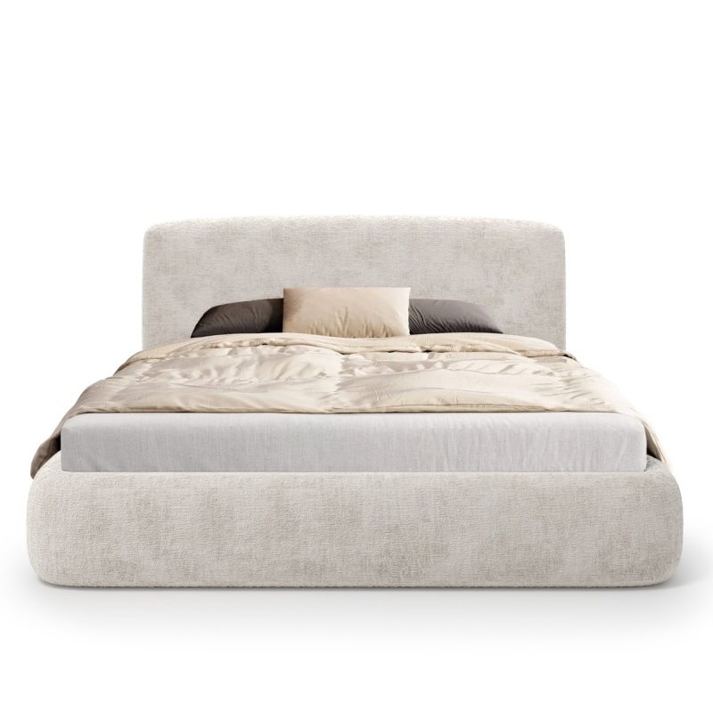 Łóżko tapicerowane Diun 160×200 cm z pojemnikiem i stelażem, jasnobeżowe