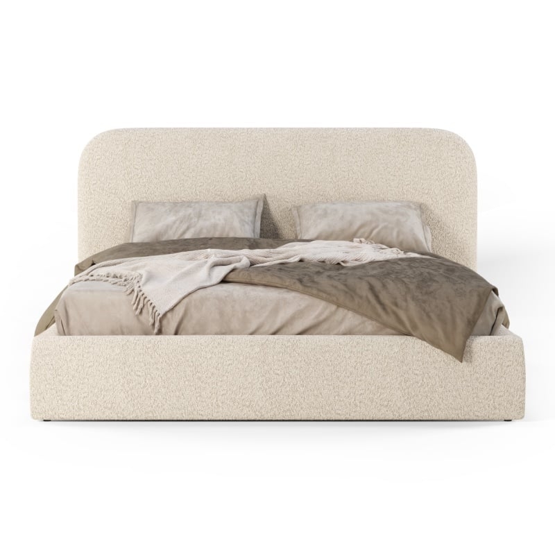 Łóżko tapicerowane Mateo 140×200 cm ze stelażem i pojemnikiem, beżowe, boucle