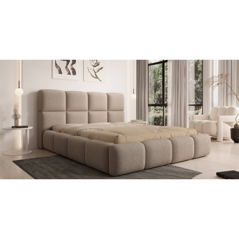 Dodaj swojej sypialni wyjątkowego uroku i funkcjonalności dzięki łóżku Merida. Jego wysoki zagłówek, ozdobiony subtelnymi przeszyciami, nie tylko podkreśla elegancki design, ale także zapewnia wygodne oparcie podczas relaksu. Miękka tkanina boucle w ciepłym, beżowym odcieniu wprowadza do wnętrza przytulność i styl.