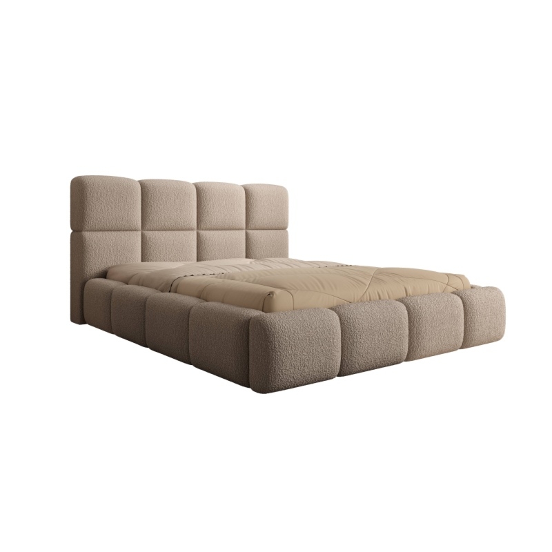 Dodaj swojej sypialni wyjątkowego uroku i funkcjonalności dzięki łóżku Merida. Jego wysoki zagłówek, ozdobiony subtelnymi przeszyciami, nie tylko podkreśla elegancki design, ale także zapewnia wygodne oparcie podczas relaksu. Miękka tkanina boucle w ciepłym, beżowym odcieniu wprowadza do wnętrza przytulność i styl.
