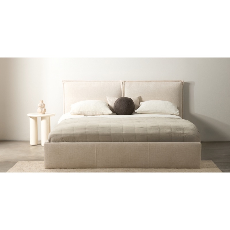 Łóżko Tono prezentuje nowoczesny design, który łączy w sobie prostą formę z funkcjonalnym wyposażeniem. Jego wysoki zagłówek podzielony na dwie, miękkie poduchy, gwarantuje wygodę i komfort podczas relaksu przy ulubionej książce czy serialu. Kieszonka w bocznej części łóżka, pomoże ci przechować telefon lub inne drobiazgi, które chcesz mieć pod ręką.Łóżko jest obite miękką, szenilową tkaniną w jasnobeżowym kolorze, która wniesie do Twojego wnętrza przytulność i subtelną elegancję. Tkanina Alia poza tym, że prezentuje się bardzo elegancko to charakteryzuje się funkcją łatwego czyszczenia i właściwościami hydrofobowymi, dzięki czemu bez problemu usuniesz nawet najtrudniejsze plamy.