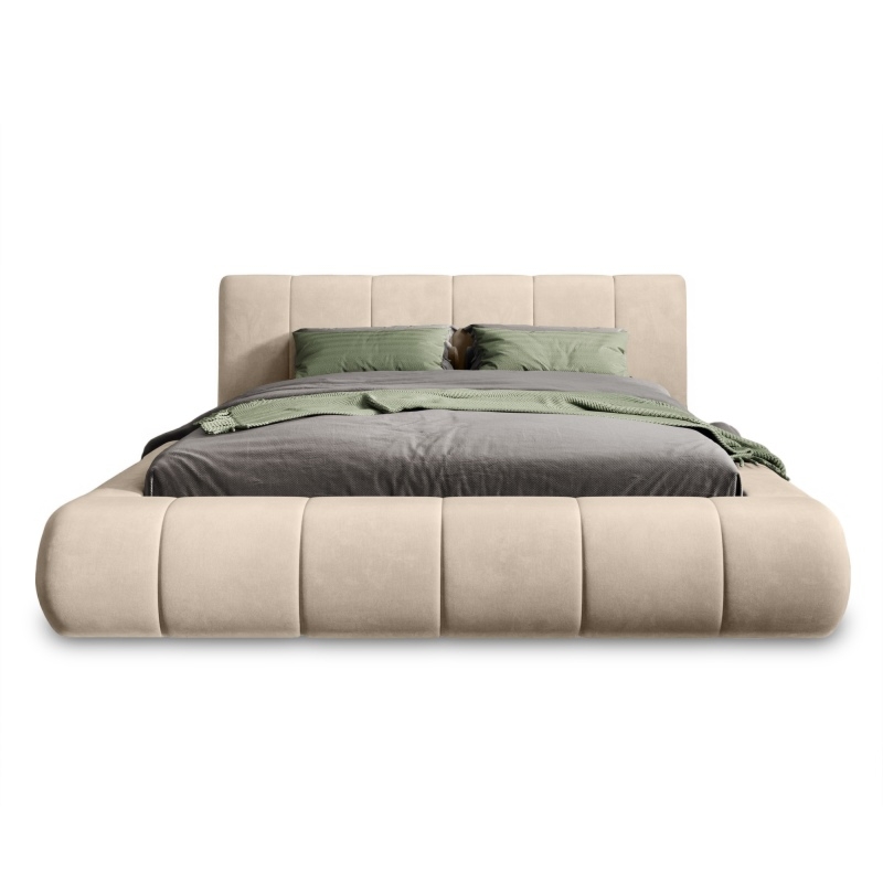 Łóżko tapicerowane Vigo 140×200 cm ze stelażem i pojemnikiem, jasnobeżowe, welurowe