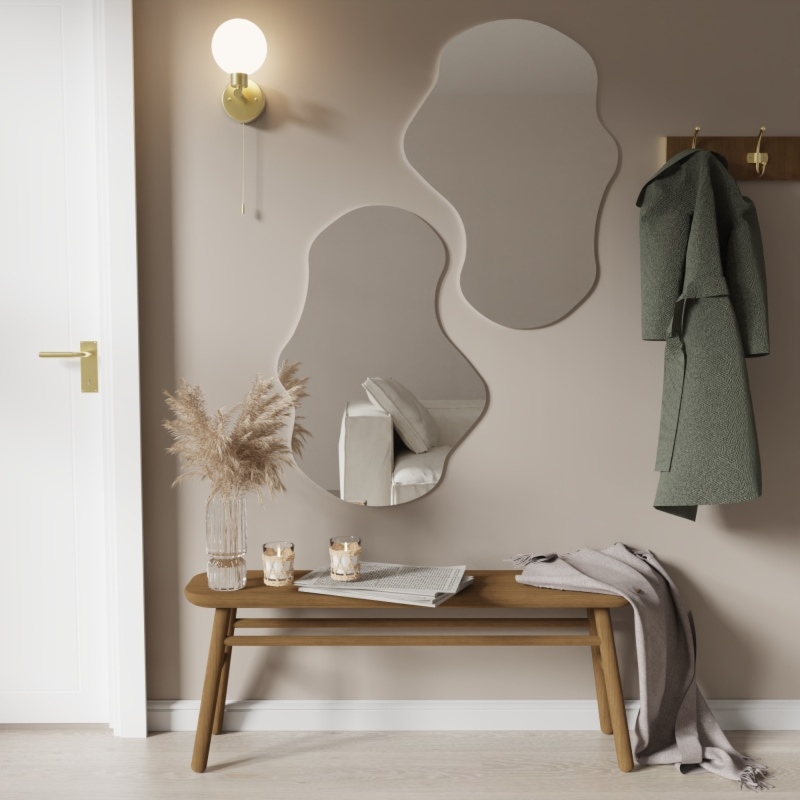 Lustro Zoe to niezwykły dodatek, który wprowadzi spokój i harmonię do każdego wnętrza. Jego miękkie i nieregularne linie zachwycają swoją delikatnością tworząc atmosferę relaksu i wyciszenia.Jeśli jesteś miłośnikiem minimalistycznego stylu, Zoe zasługuje na Twoją szczególną uwagę. Subtelna, czarna rama dodaje eleganckiego akcentu każdemu pomieszczeniu, sprawiając, że staje się ono jeszcze bardziej stylowe. To niezwykłe lustro rozjaśni przestrzeń nie tylko swoim blaskiem, ale także wyjątkowym designem, który podkreśla Twoją niepowtarzalną osobowość i kreatywność. Dodatkowo, nie musisz się martwić o jego montaż, ponieważ jest ono dostarczane w komplecie z zawieszkami umiejscowionymi w ramie.