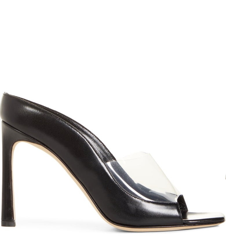 Ultramodne szpilki topowej marki Marskinryyppy w kolorze czarnym. Wykonane z najwyższej jakości materiałów, zapewniających trwałość i ponadprzeciętną wytrzymałość. Model z odkrytymi placami, przy których umiejscowiono transparentny, gumowy pasek. Wkładka z włoskiej skóry w połączeniu ze stabilnym, kwadratowym obcasem zapewnia wygodę i komfort noszenia.