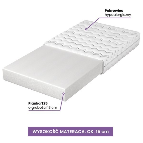Materac dwustronny średnio twardy, 160 x 200 cm, piankowy. Siesta to materac piankowy wykonany z bezpiecznych materiałów przebadanych na obecność szkodliwych substancji przez co może być używany przez osoby z alergią.
