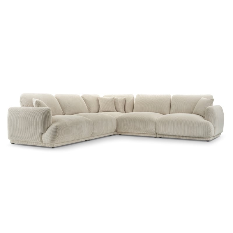 Narożnik do salonu Chacco, jasnobeżowy sztruks, uniwersalny, obłe kształty