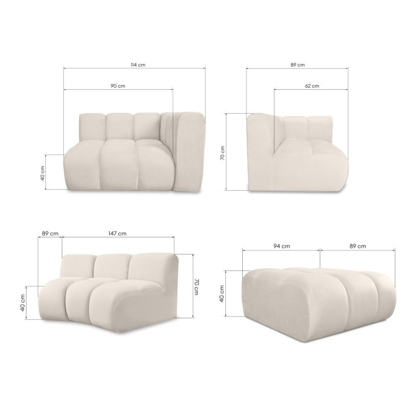 Narożnik modułowy Royal stanowi doskonałe rozwiązanie do każdego wnętrza, umożliwiające łatwe dostosowanie rozmiaru za pomocą dodatkowych modułów. Ten konkretny układ zawiera element boczny, prawy, element narożny i puf. Wyjątkowe, dekoracyjne przeszycia nadają Royal charakterystyczny, elegancki wygląd. Każdy detal został starannie zaprojektowany, by wzbogacić estetykę wnętrza i przyciągnąć uwagę. Royal zachwyca swoją wszechstronnością, dostępny w różnorodnych kolorach i rodzajach tkanin, by dostosować się do każdego gustu i aranżacji wnętrza.Zainwestuj w mebel, który nie tylko fascynuje wyglądem, lecz także elastycznie dostosowuje się do zmieniających się potrzeb Twojego salonu.