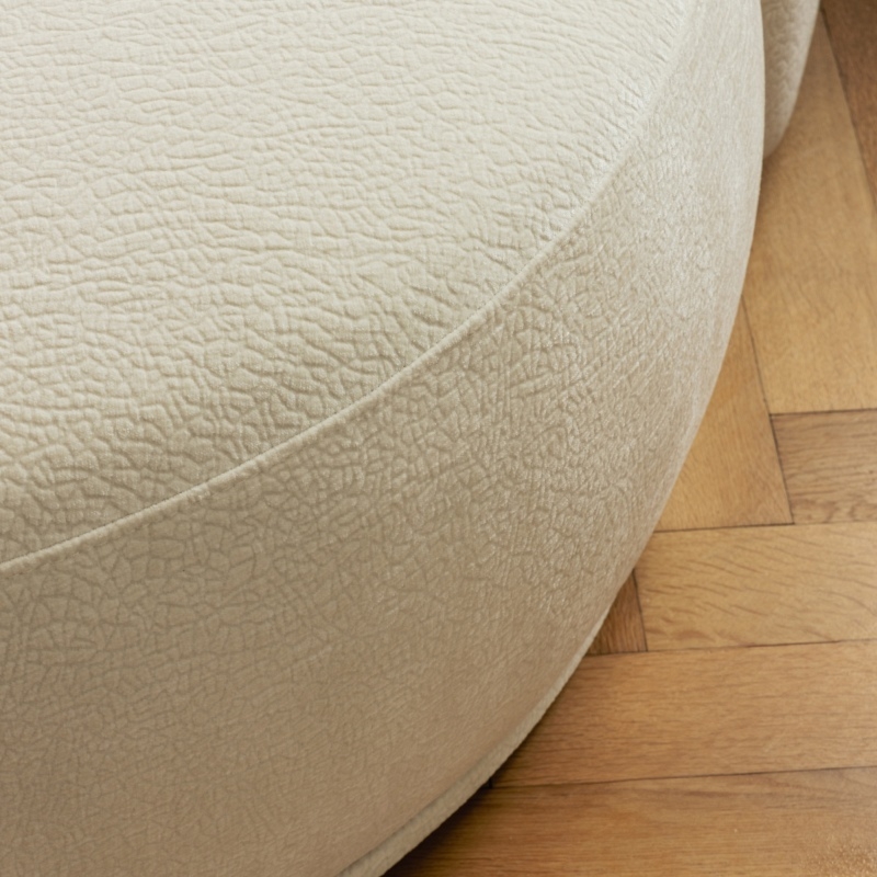 Narożnik modułowy z pufem Nobo, obłe kształty, jasnobeżowy, prawostronny