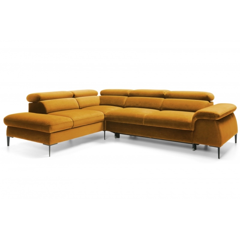 Narożnik rozkładany Blues z pojemnikiem musztardowy welur lewostronny