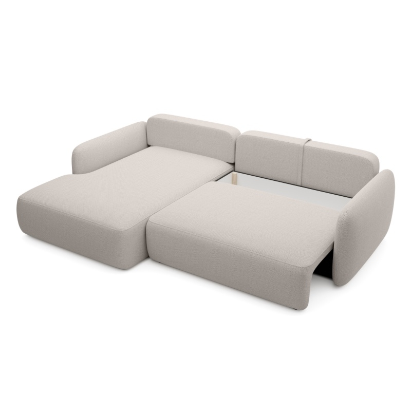 Narożnik rozkładany Botse beżowoszary z pojemnikiem, obłe kształty, lewy