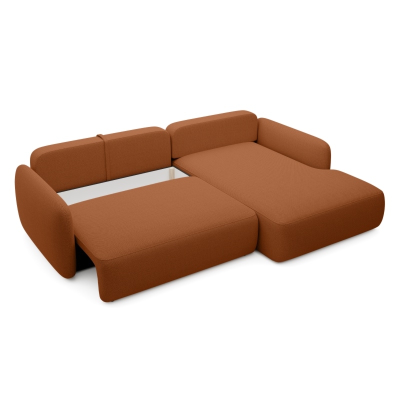 Narożnik rozkładany Botse miedziany z pojemnikiem, obłe kształty, prawy