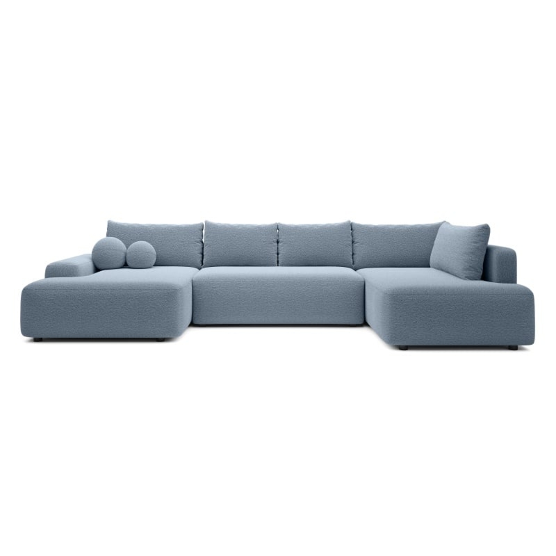 Stwórz w swoim salonie strefę relaksu i komfortu. Narożnik Loop U2 zachwyca nietuzinkowym designem i niebieskim obiciem z tkaniny boucle, które pasuje do wielu aranżacji wnętrz. Jego kształt litery U oraz miękkie poduchy oparciowe i zintegrowany pojemnik na pościel czynią go idealnym miejscem do odpoczynku, a funkcja spania DL pozwala na szybkie przekształcenie go w wygodne łóżko dla gości.