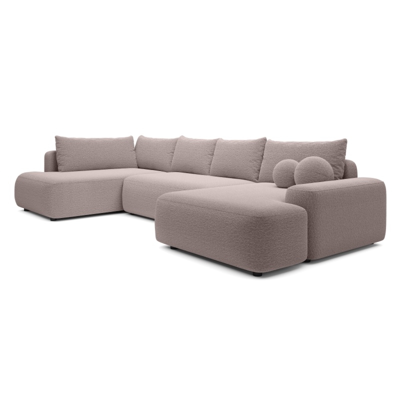 Stwórz w swoim salonie strefę relaksu i komfortu. Narożnik Loop U2 zachwyca nietuzinkowym designem i brązowoszarym obiciem z tkaniny boucle, które pasuje do wielu aranżacji wnętrz. Jego kształt litery U oraz miękkie poduchy oparciowe i zintegrowany pojemnik na pościel czynią go idealnym miejscem do odpoczynku, a funkcja spania DL pozwala na szybkie przekształcenie go w wygodne łóżko dla gości.