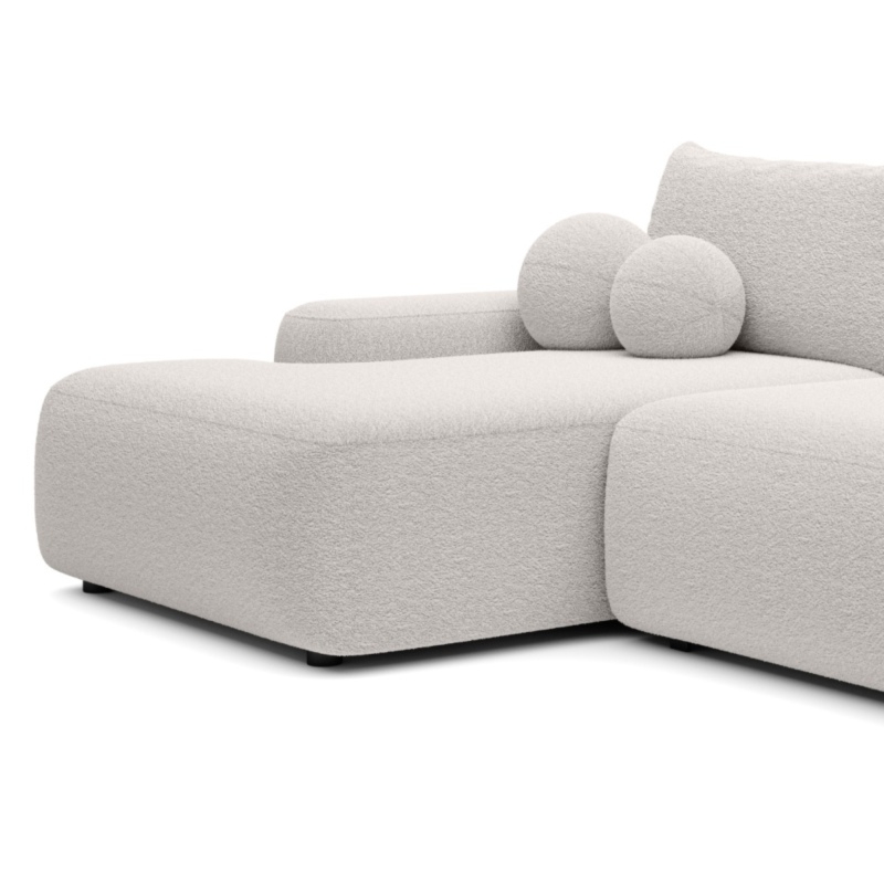 Odkryj narożnik Loop i zanurz się w świat nowoczesnego designu, gdzie łagodne, zaokrąglone linie doskonale współgrają z miękkością tkaniny boucle