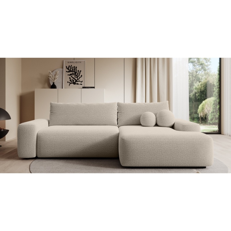 Narożnik rozkładany Loop z pojemnikiem jasnobeżowy, prawostronny, boucle