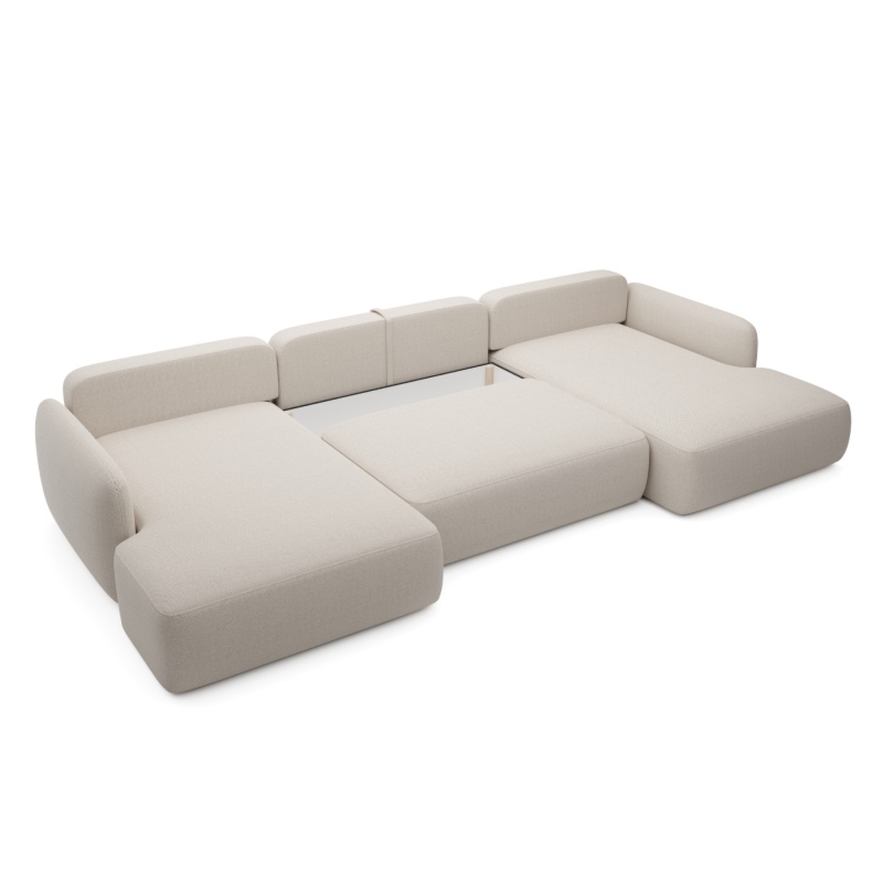Narożnik rozkładany Mossa U1 z pojemnikiem, obłe kształty