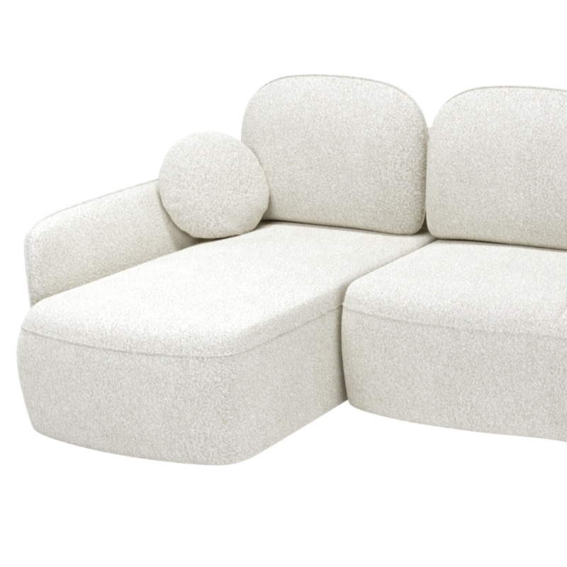 Narożnik rozkładany Nicola z pojemnikiem, prawy/lewy, obłe kształty, boucle